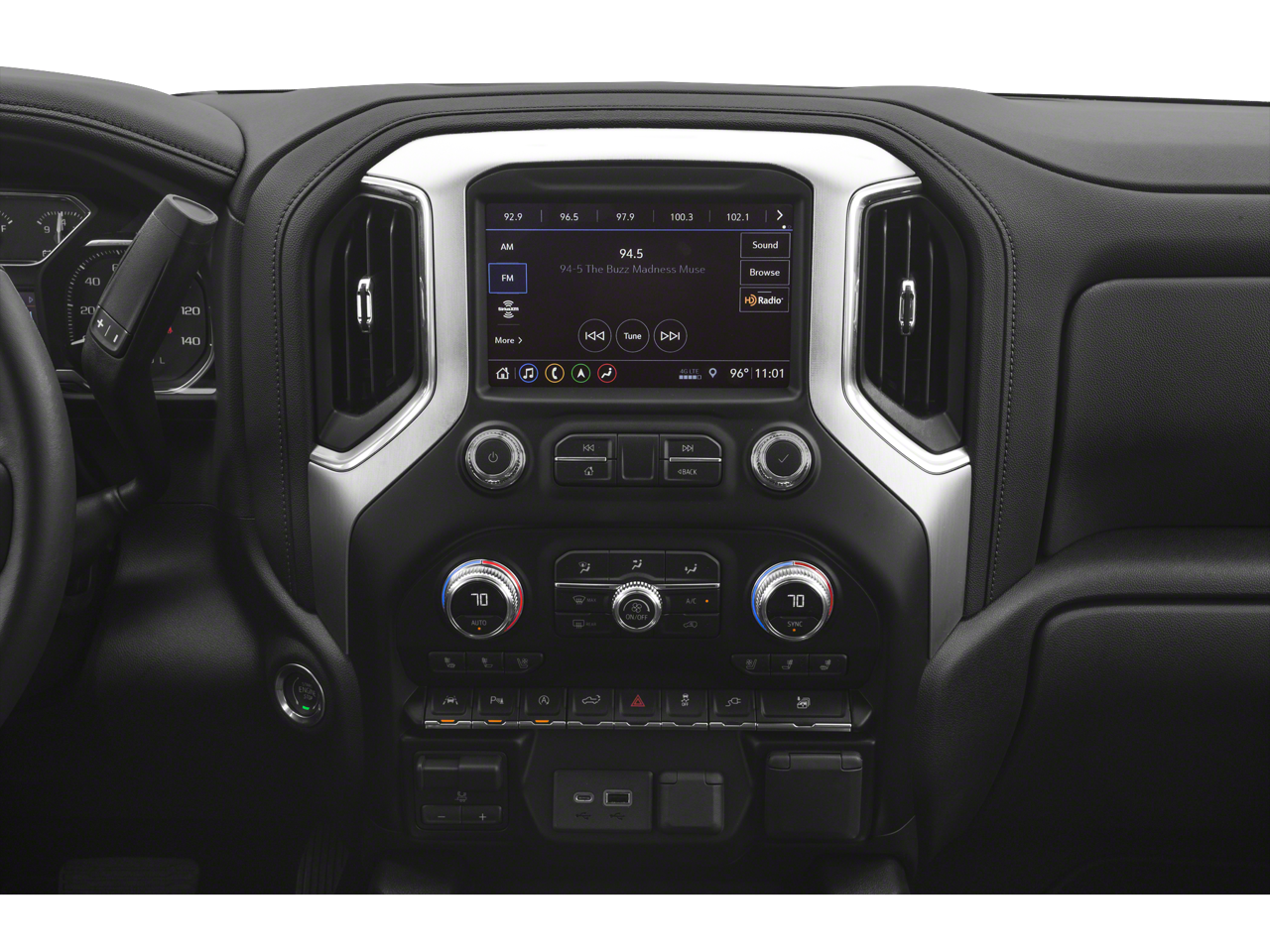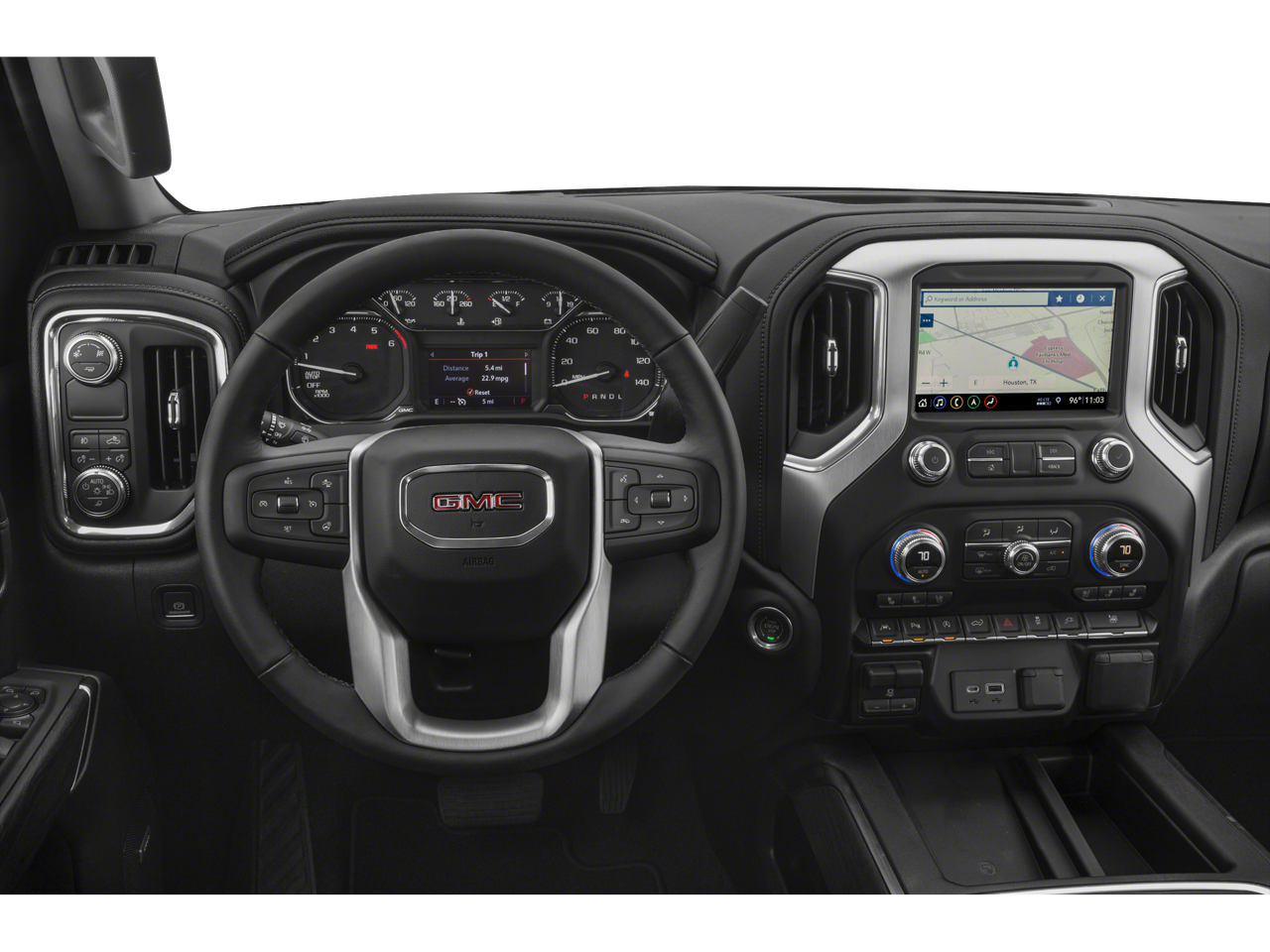 8-Speed Automatic, 4WD, Jet Black Leather, 10-Way Power Driver Seat Adjuster w/Lumbar, 10-Way Power Passenger Seat Adjuster w/Lumbar, 12-Volt Rear Auxiliary Power Outlet, 120-Volt Bed Mounted Power Outlet, 120-Volt Instrument Panel Power Outlet, 170 Amp Alternator, 2 USB Ports, 2 USB Ports (1st Row), 20 x 9 Polished Aluminum Wheels, 3.23 Rear Axle Ratio, 4-Wheel Disc Brakes, 6 Speakers, 6-Speaker Audio System Feature, ABS brakes, Air Conditioning, All-Weather Floor Liner (LPO), Alloy wheels, AM/FM radio: SiriusXM, Apple CarPlay/Android Auto, Auto-dimming door mirrors, Auto-dimming Rear-View mirror, Automatic temperature control, Auxiliary External Transmission Oil Cooler, Brake assist, Bumpers: chrome, Chrome Assist Steps, Chrome Grille, Color-Keyed Carpeting Floor Covering, Compass, Deep-Tinted Glass, Delay-off headlights, Driver Alert Package I, Driver Alert Package II, Driver door bin, Driver Memory, Driver vanity mirror, Dual front impact airbags, Dual front side impact airbags, Electric Rear-Window Defogger, Electrical Lock Control Steering Column, Electronic Stability Control, Floor Mounted Console, Following Distance Indicator, Forward Collision Alert, Front 40/20/40 Split-Bench Seat, Front anti-roll bar, Front Bucket Seats, Front Center Armrest w/Storage, Front dual zone A/C, Front fog lights, Front Frame-Mounted Black Recovery Hooks, Front License Plate Kit, Front Pedestrian Braking, Front reading lights, Front wheel independent suspension, Fully automatic headlights, GMC 4G LTE, GMC Connected Access, HD Radio, Heated 2nd Row Outboard Seats, Heated door mirrors, Heated Driver & Front Passenger Seating, Heated front seats, Heated steering wheel, Heavy Duty Suspension, Heavy-Duty Rear Locking Differential, Hitch Guidance, Hitch Guidance w/Hitch View, Illuminated entry, In-Vehicle Trailering App, Integrated Trailer Brake Controller, IntelliBeam Automatic High Beam On/Off, Keyless Open & Start, Lane Change Alert w/Side Blind Zone Alert, Lane Keep Assist w/Lane Departure Warning, LED Cargo Area Lighting, Low Speed Forward Automatic Braking, Low tire pressure warning, Manual Tilt-Wheel & Telescoping Steering Column, Memory seat, Occupant sensing airbag, OnStar & GMC Connected Services Capable, Outside temperature display, Overhead airbag, Overhead console, Panic alarm, Passenger door bin, Passenger vanity mirror, Perforated Leather-Appointed Seat Trim, Perimeter Lighting, Power Door Locks, Power door mirrors, Power driver seat, Power Front Passenger Windows w/Express Up/Down, Power Front Windows w/Driver Express Up/Down, Power passenger seat, Power Rear Windows w/Express Down, Power Sliding Rear Window w/Rear Defogger, Power steering, Power Sunroof, Power windows, Preferred Equipment Group 4SA, Premium audio system: GMC Infotainment System, Radio data system, Radio: Premium GMC Infotainment Sys w/Multi-Touch, Rear Cross Traffic Alert, Rear Dual USB Charging-Only Ports, Rear reading lights, Rear seat center armrest, Rear step bumper, Rear Wheelhouse Liners, Rear window defroster, Remote keyless entry, Remote Vehicle Starter System, Safety Alert Seat, Security system, SiriusXM Radio, SLT Convenience Package, SLT Premium Package, Speed control, Speed-sensing steering, Split folding rear seat, Steering Wheel Audio Controls, Steering wheel mounted audio controls, Tachometer, Telescoping steering wheel, Theft Deterrent System (Unauthorized Entry), Tilt steering wheel, Traction control, Trailer Tire Pressure Monitor System, Trailering Package, Trip computer, Ultrasonic Front & Rear Park Assist, Universal Home Remote, Variably intermittent wipers, Ventilated Driver & Front Passenger Seats, Voltmeter, Wheels: 18 x 8.5 6-Spoke Machine